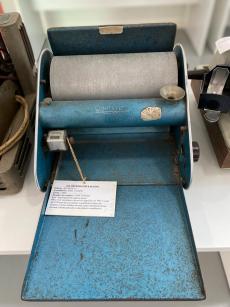 | Nome do Objeto | Reprodutor a álcool (azul) | | Descrição | Uso: Reprodução de cópias a álcool | | Histórico | Obs.: Este reprodutor a álcool foi adquirido em 1965 e usado até 1978 para levar aos alunos e acadêmicos relizes de assuntos a serem tratados em aula e para reproduzir provas em casa a serem aplicadas a seus alunos e acadêmicos. |