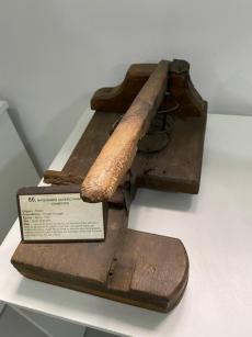 | Nome do Objeto | Maquinário caseiro para fazer charutos (pequena) | | Descrição | Trata-se da forma da prensa da cortadora | | Histórico | Esse serviço a partir da década de 40 passou a ser feito em grande parte por facções familiares. Cada família tinha ou adquiria esse equipamento, recebia o fumo em casa e ganhava ppor produção. Ainda hoje funciona esse sistema em Rio dos Cedros. |