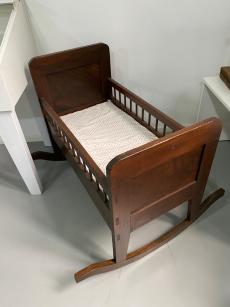 | Nome do Objeto | Berço Infantil de Balanço | | Descrição | Este é um berço infantil de balanço feito de madeira que acomodava crianças pequenas. | | Histórico | Usado pelas crianças da época. Podemos observar a habilidade e a atenção aos detalhes que foram empregadas em sua construção. Com linhas elegantes e curvas suaves, este berço certamente teria sido um lugar confortável e seguro para as crianças descansarem e dormirem. Seu balanço suave, provavelmente produzido pelo movimento natural do ambiente ou pelo toque gentil de um cuidador, pode ter sido uma fonte de conforto e tranquilidade para os pequenos. Ele é um exemplo encantador do cuidado e amor que são dedicados às crianças desde tempos imemoriais.