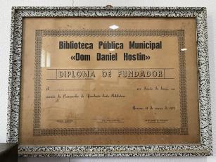 Biblioteca Pública Municipal Dom Daniel Hostin - A Vitor Dellagiustina por doação de livros, na ocasião da Campanha de Fundação desta Biblioteca. Gaspar, 18 de março de 1975.