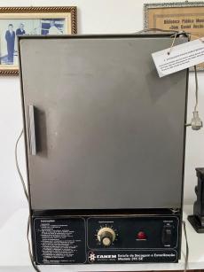 | Nome do Objeto | Esterilizador para Secagem do Material de Uso | | Descrição | Este é um Esterilizador para Secagem do Material de Uso, uma estufa fabricada em torno de 1960, possivelmente adquirida em São Paulo. Este equipamento era essencial para a esterilização de materiais utilizados por protéticos, garantindo a segurança e higiene no processo de tratamento de pacientes. Com uma capacidade adequada para secagem e esterilização, este esterilizador foi um instrumento fundamental no cuidado com a saúde bucal. O design simples e eficiente deste item exemplifica a evolução dos métodos e técnicas de esterilização na área odontológica. | | Histórico | Este equipamento era essencial para a esterilização de materiais utilizados por protéticos, garantindo a segurança e higiene no processo de tratamento de pacientes. Com uma capacidade adequada para secagem e esterilização, este esterilizador foi um instrumento fundamental no cuidado com a saúde bucal. O design simples e eficiente deste item exemplifica a evolução dos métodos e técnicas de esterilização na área odontológica. |